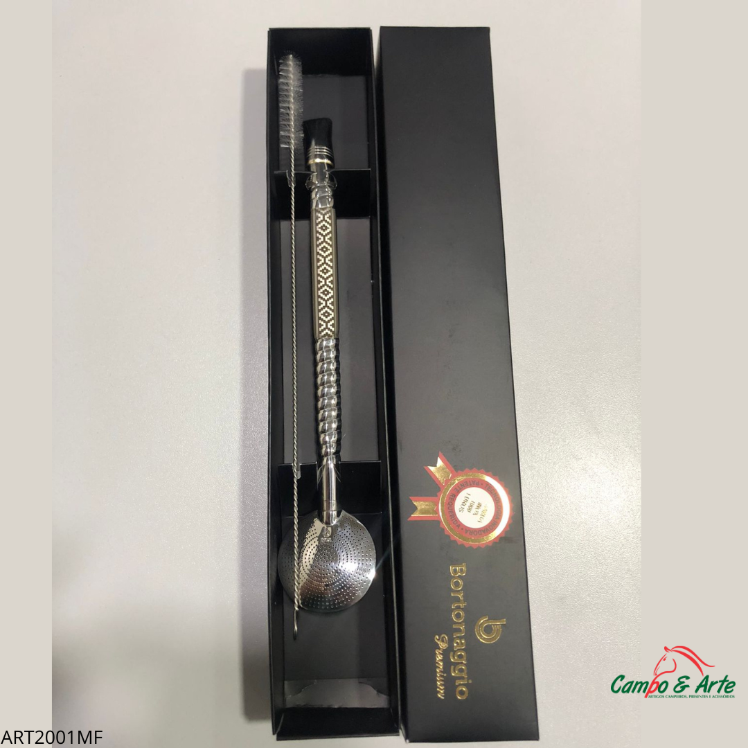 Bomba de Chimarrão Aço Inox 1000 Furos com faixa pampa