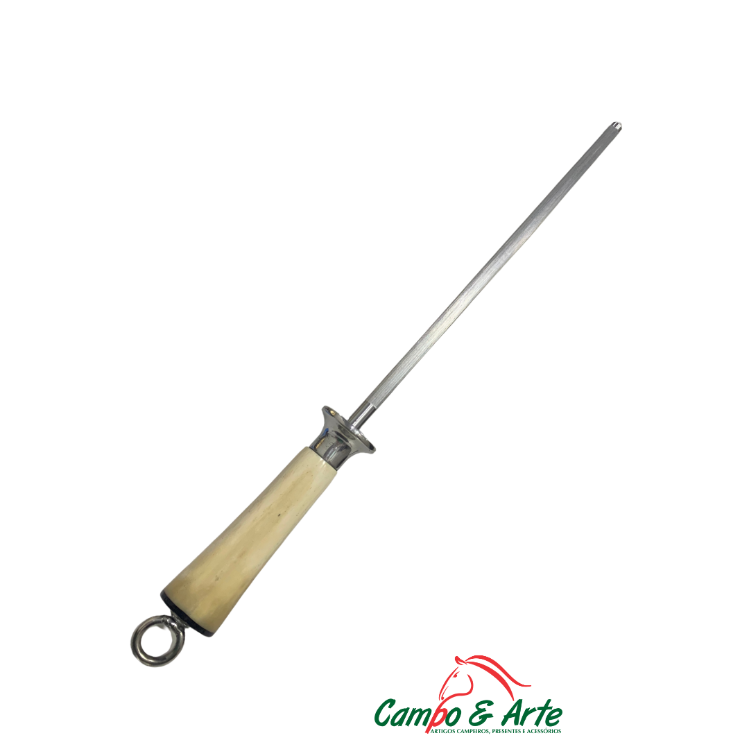Cabo de Osso Genuíno: O destaque desta chaira é o seu cabo de osso, elegantemente esculpido. Este material não só confere uma estética rústica e sofisticada à peça, como também oferece uma pegada ergonômica, firme e confortável durante o uso, tornando o processo de afiação mais seguro e agradável.