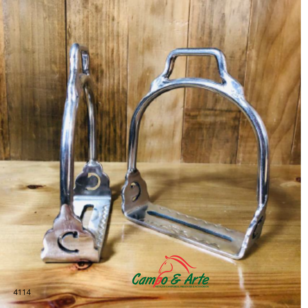 Estribo de Inox com Símbolo do Cavalo Crioulo