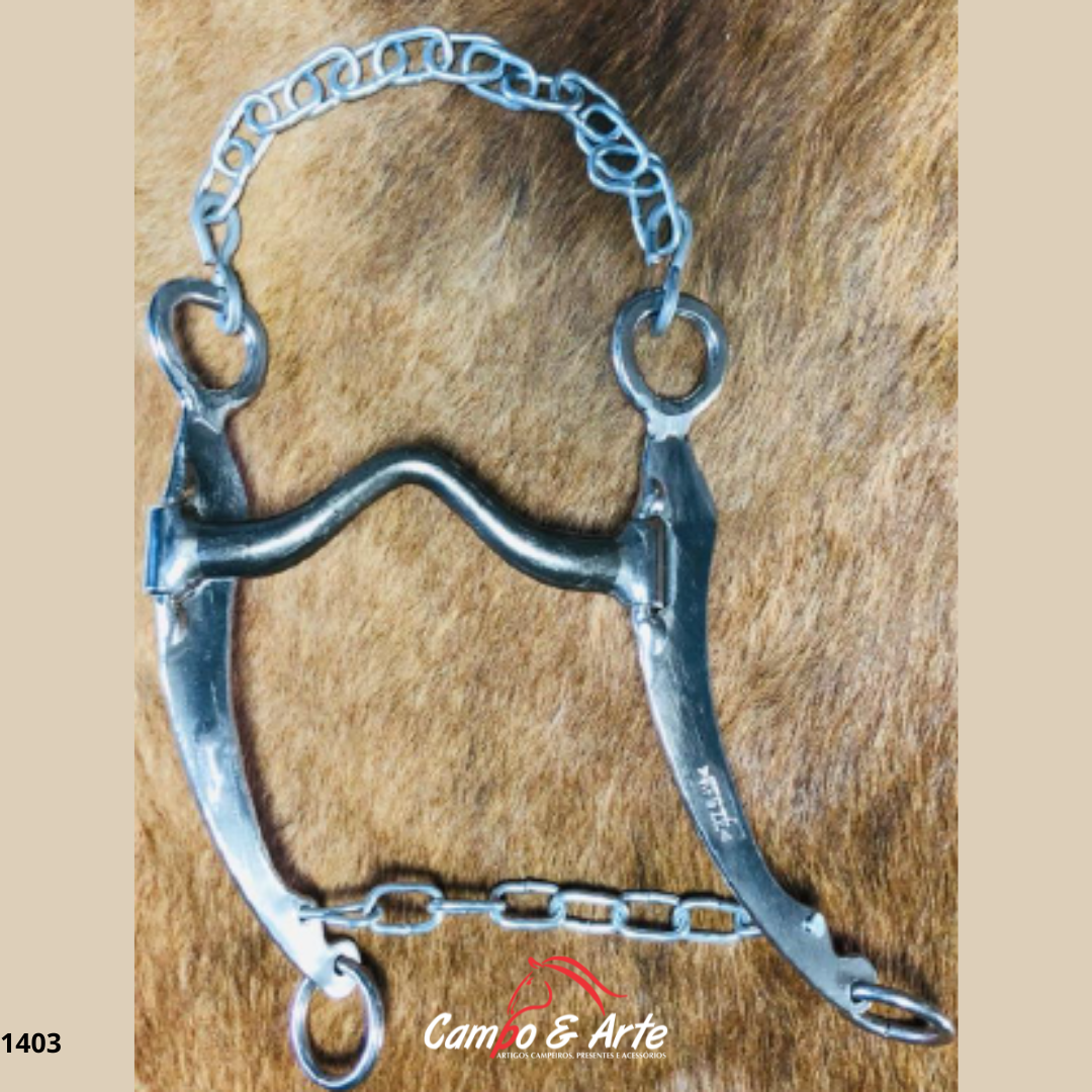 Bocal de Ferro (Ferro Doce): O bocal é feito de ferro, um material tradicionalmente preferido por muitos cavaleiros. O ferro, quando em contato com a saliva do animal, oxida naturalmente (ferrugem superficial não prejudicial) e libera um sabor adocicado, o que estimula a salivação e a aceitação do freio pelo cavalo, tornando o comando mais suave e eficaz.