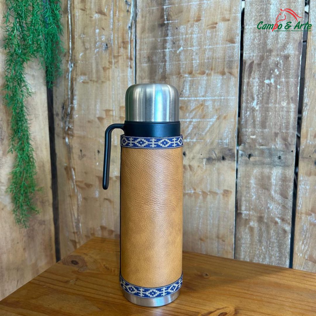 Projetada para quem não abre mão da tradição, mas valoriza a elegância e a alta funcionalidade. Esta garrafa térmica tipo "palito" de 1 litro é revestida artesanalmente com couro legÃtimo, garantindo durabilidade, sofisticação e uma pegada confortável.