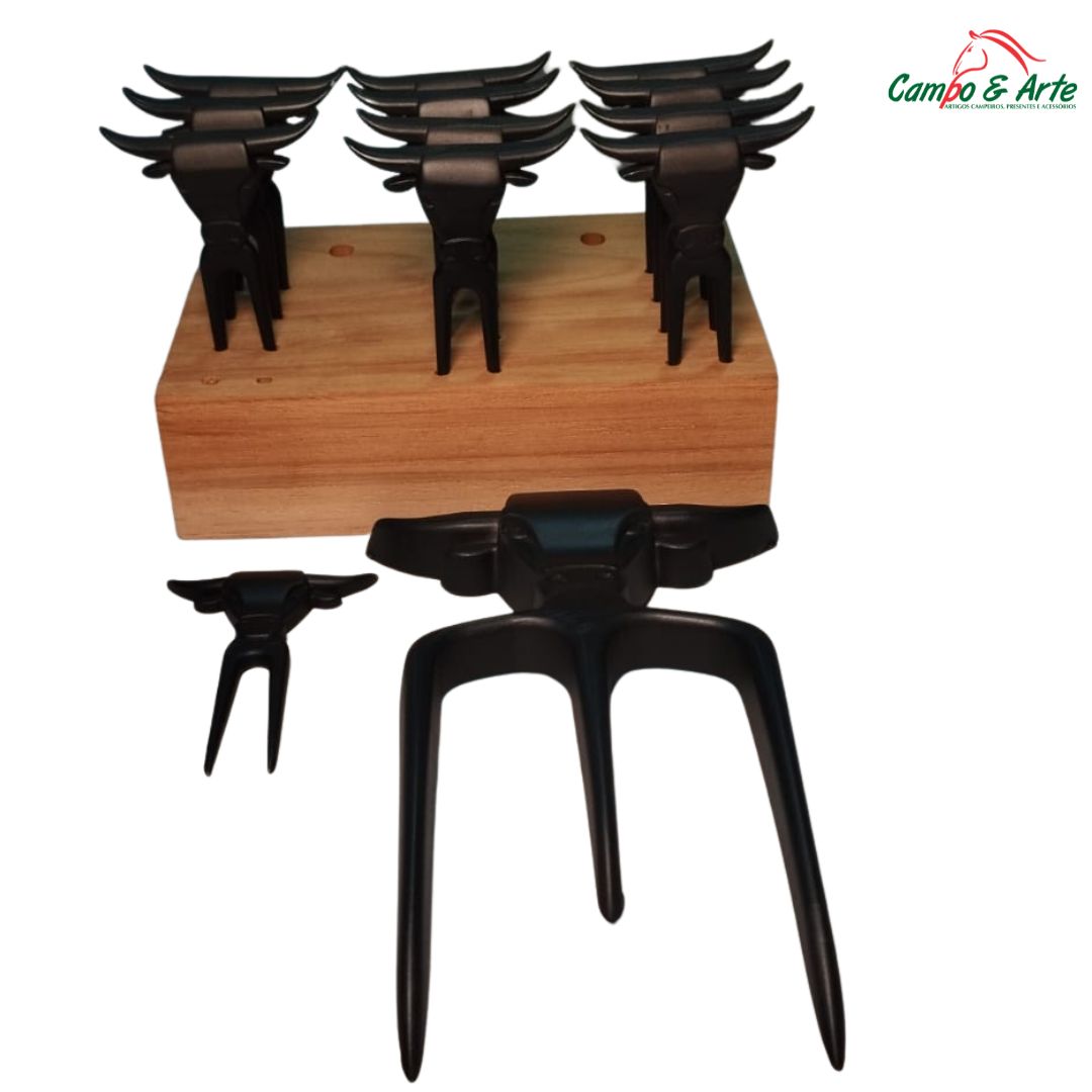 Eleve o nÃvel do seu churrasco com o Kit Chef Churrasqueiro. Projetado para quem não abre mão de praticidade, segurança e sofisticação na hora de servir. Esqueça os garfos de mesa convencionais; este kit é a união da robustez do tridente com a elegância dos mini garfos para petisco.