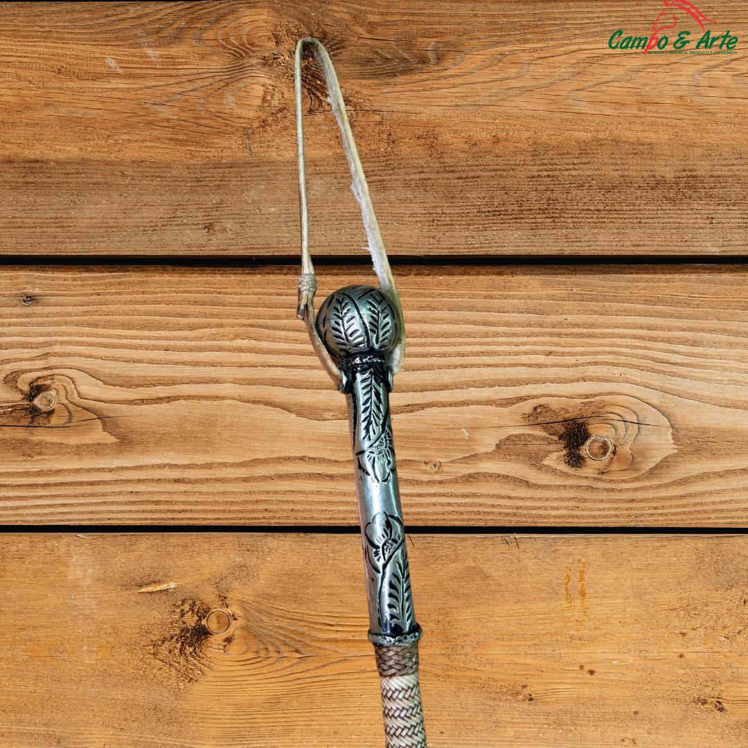 Este mango artesanal é uma verdadeira obra-prima, combinando a robustez do couro cru com o requinte da liga metálica de alpaca. Ideal para quem busca um item de qualidade superior, que une funcionalidade e um toque de luxo e tradição.