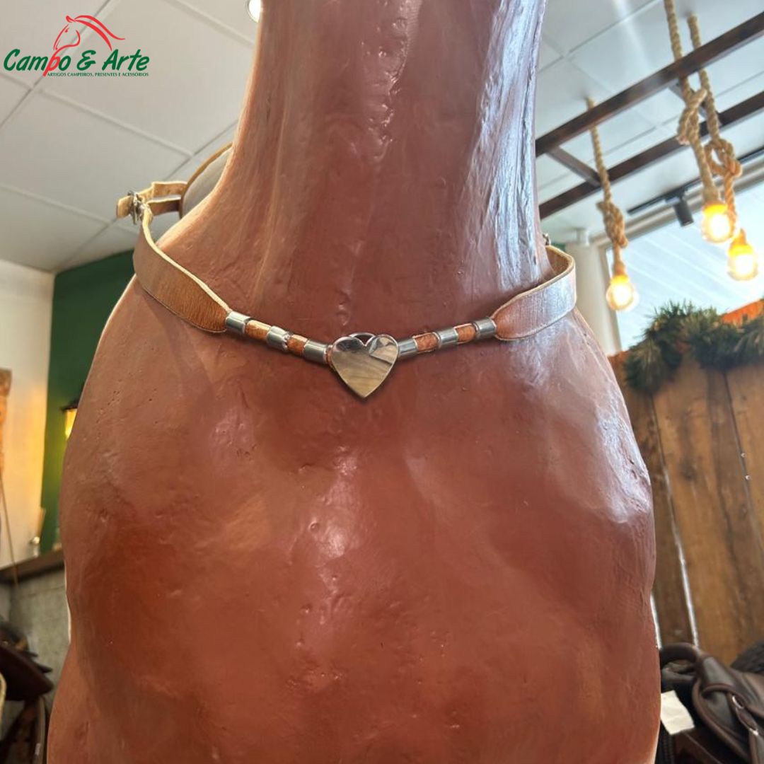 Peitoral de Couro Legítimo com Bombinhas e Florão de Coração - Elegância e Tradição na Montaria