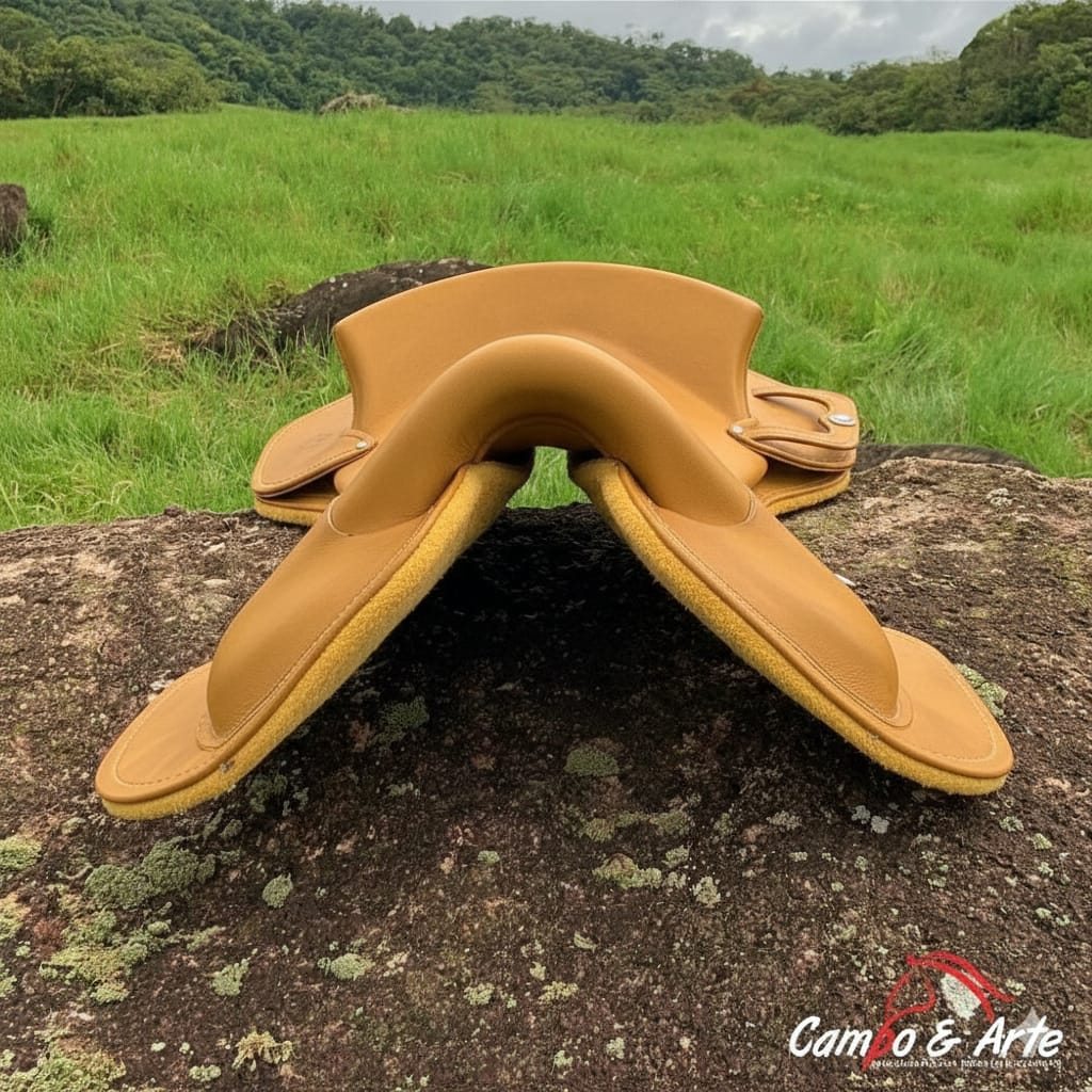 Importante: por se tratar de couro natural e de altíssima qualidade, pode haver variações no tom da cor na parte superior e também no couro da forração das basteiras. Lembrando que de um celular ou computador para o outro também pode mostrar uma variação.
